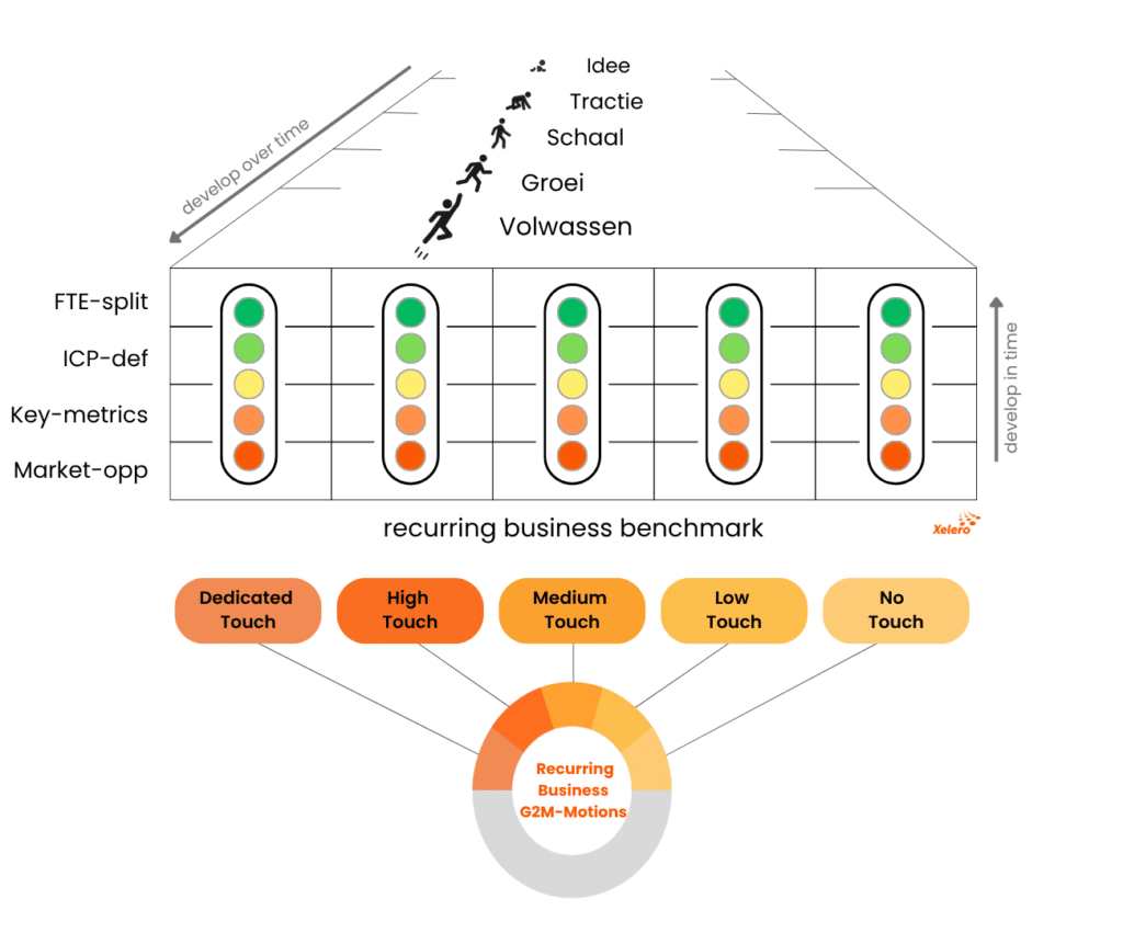 Bij een gezond SaaS-bedrijf verschuift met volwassenheids-stadia de FTE-split van bouwen naar verkopen, en uiteindelijk naar behouden en optimaliseren. Motions bepalen daarbij het relevante mechaniek (waar zit FTE, en hoe werkt groei). Mis-alignment tussen Motion en organisatie, ritme en KPI’s maakt groei duur en fragiel.